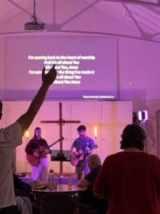 It’s usually myself and Abigail that lead and we have been so blessed by others that have joined us on band from time to time, having instruments such as piano, violin and cajon to accompany us.
