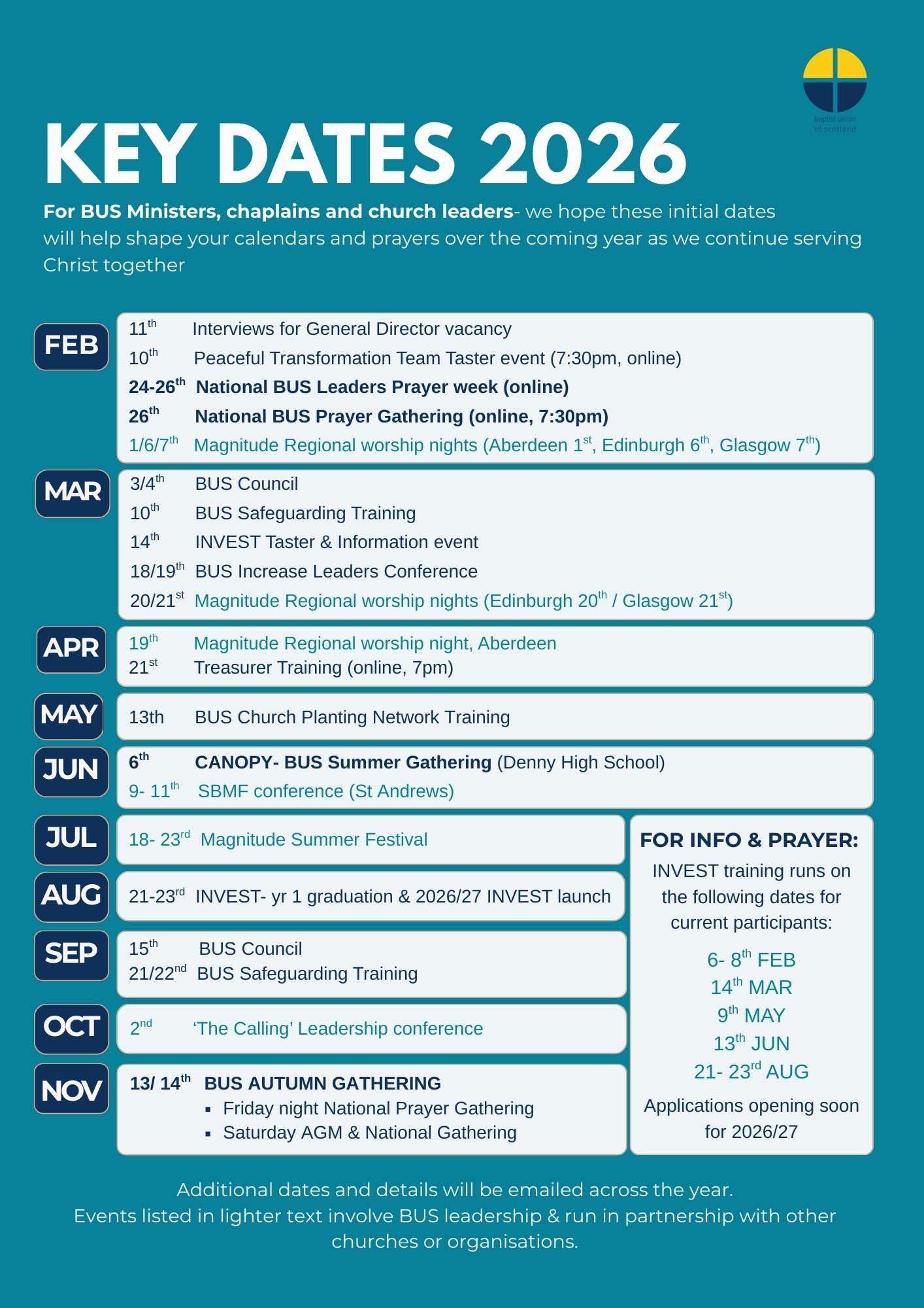 Church leaders- download ‘Key Dates 2026’ and make sure you have all the important events in your diary!